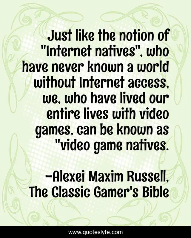 "Alexei Maxim Russell, The Classic Gamer's Bible Quotes." Quoteslyfe.com, 2025. Fri. 05 Dec. 2025. <https://www.quoteslyfe.com/quote/Just-like-the-notion-of-Internet-natives-169376>.