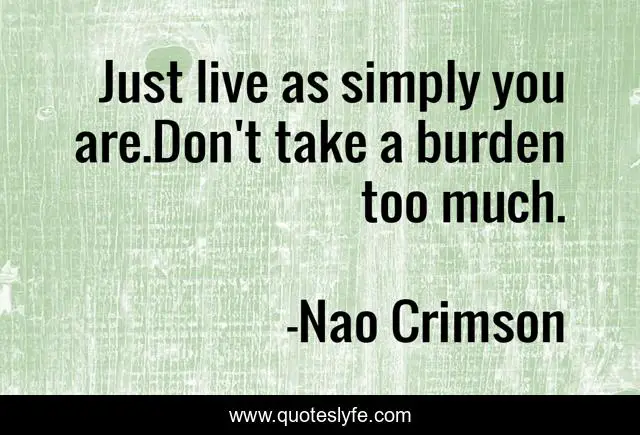 This page presents the quote "Just live as simply you are.Don't take a burden too much.". Author of this quote is Nao Crimson. .