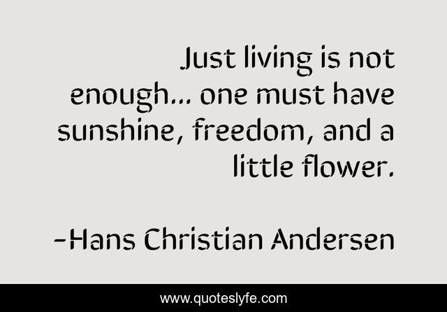 This page presents the quote "Just living is not enough... one must have sunshine, freedom, and a little flower.". Author of this quote is Hans Christian Andersen. This quote is about freedom, sunshine, flower,.