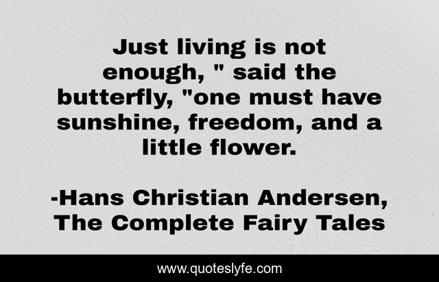 This page presents the quote "Just living is not enough, " said the butterfly, "one must have sunshine, freedom, and a little flower.". Author of this quote is Hans Christian Andersen, The Complete Fairy Tales. .