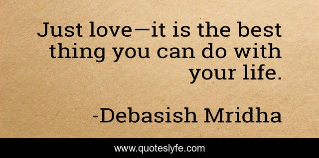This page presents the quote "Just love—it is the best thing you can do with your life.". Author of this quote is Debasish Mridha. This quote is about love, quotes, best-thing-you-can-do, philosophy, debasish-mridha, life-wisdom, what-to-do-with-your-life, inspirational, enthusiasm,.