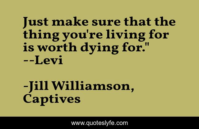 This page presents the quote "Just make sure that the thing you're living for is worth dying for." --Levi". Author of this quote is Jill Williamson, Captives. This quote is about living, dying, inspirational, enthusiasm,.