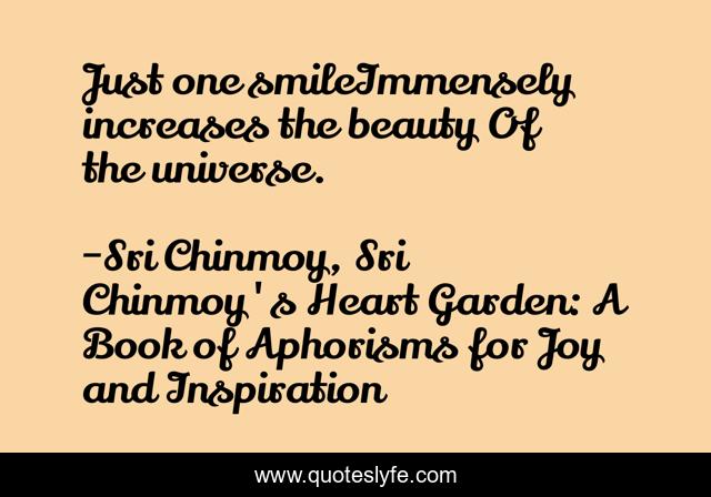 "Sri Chinmoy, Sri Chinmoy's Heart Garden: A Book of Aphorisms for Joy and Inspiration Quotes." Quoteslyfe.com, 2025. Sat. 06 Dec. 2025. <https://www.quoteslyfe.com/quote/Just-one-smileImmensely-increases-the-beauty-Of-60586>.