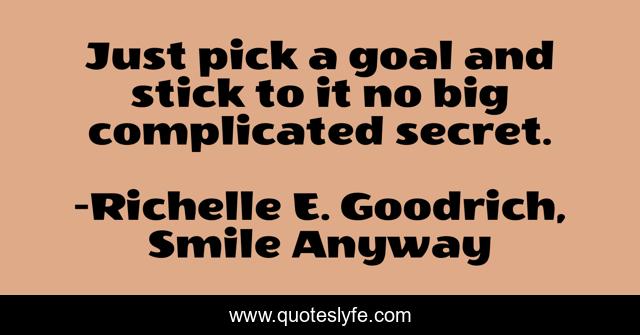 This page presents the quote "Just pick a goal and stick to it―no big complicated secret.". Author of this quote is Richelle E. Goodrich, Smile Anyway. This quote is about success, encouragement, richelle, goals, inspirational, richelle-goodrich, enthusiasm, achieving,.