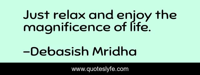 This page presents the quote "Just relax and enjoy the magnificence of life.". Author of this quote is Debasish Mridha. This quote is about enjoy-life, relax, philosophy, debasish-mridha, relax-and-enjoy-life, quotes, inspirational, enthusiasm, debasish-mridha-m-d,.