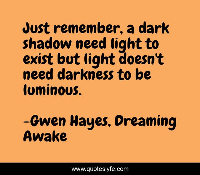 "Gwen Hayes, Dreaming Awake Quotes." Quoteslyfe.com, 2025. Sat. 06 Dec. 2025. <https://www.quoteslyfe.com/quote/Just-remember-a-dark-shadow-need-light-118246>.