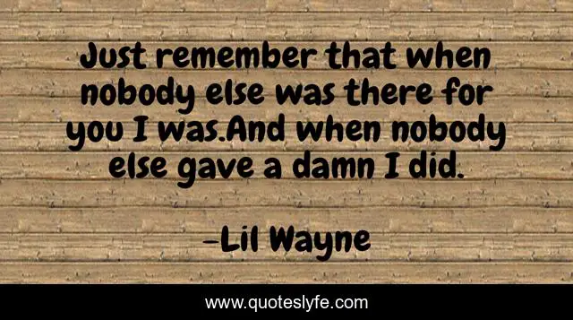 This page presents the quote "Just remember that when nobody else was there for you I was.And when nobody else gave a damn I did.". Author of this quote is Lil Wayne. This quote is about lessons, life, love, hurt, truth, arych, girl, affection,.