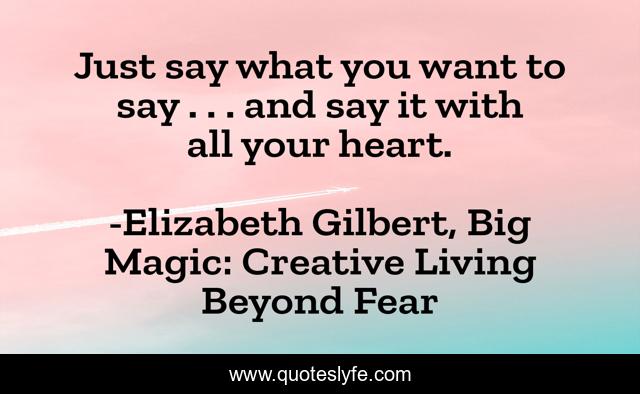 "Elizabeth Gilbert, Big Magic: Creative Living Beyond Fear Quotes." Quoteslyfe.com, 2025. Sat. 06 Dec. 2025. <https://www.quoteslyfe.com/quote/Just-say-what-you-want-to-say-250460>.