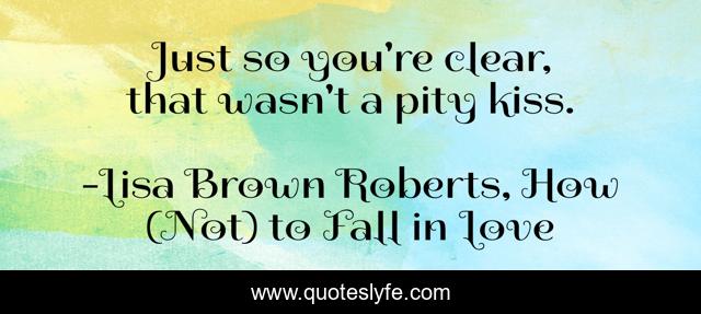 This page presents the quote "Just so you're clear, that wasn't a pity kiss.". Author of this quote is Lisa Brown Roberts, How (Not) to Fall in Love. This quote is about romance, ya, contemporary,.