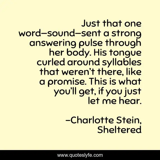 "Charlotte Stein, Sheltered Quotes." Quoteslyfe.com, 2025. Fri. 05 Dec. 2025. <https://www.quoteslyfe.com/quote/Just-that-one-word-sound-sent-a-18634>.