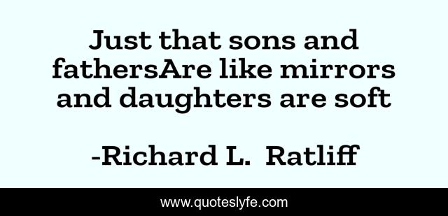This page presents the quote "Just that sons and fathersAre like mirrors and daughters are soft". Author of this quote is Richard L. Ratliff. This quote is about son, parenthood, fathers-and-sons, sons, soft, children, daughters,.