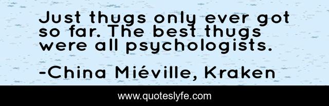 This page presents the quote "Just thugs only ever got so far. The best thugs were all psychologists.". Author of this quote is China Miéville, Kraken. This quote is about criminal-minds, thugs, thuggery, psychology,.
