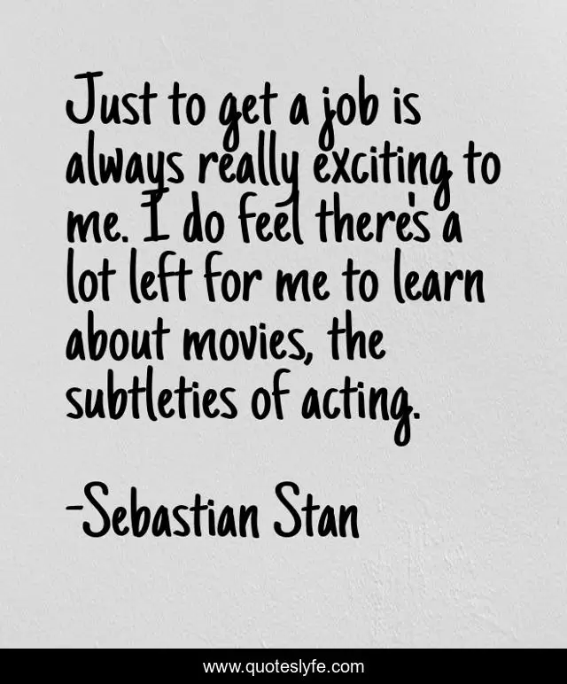 This page presents the quote "Just to get a job is always really exciting to me. I do feel there's a lot left for me to learn about movies, the subtleties of acting.". Author of this quote is Sebastian Stan. This quote is about me, job, acting,.