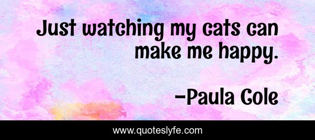 This page presents the quote "Just watching my cats can make me happy.". Author of this quote is Paula Cole. This quote is about me, cats, happy,.