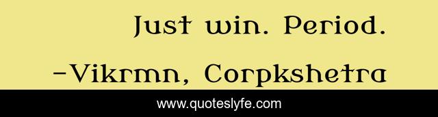 This page presents the quote "Just win. Period.". Author of this quote is Vikrmn, Corpkshetra. This quote is about corpkshetra, confidence, vikram, win, motivational, period, ca-vikram-verma, chartered-accountant, vvck,.