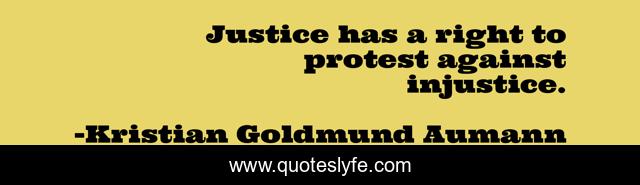 This page presents the quote "Justice has a right to protest against injustice.". Author of this quote is Kristian Goldmund Aumann. This quote is about justice, protest, injustice,.