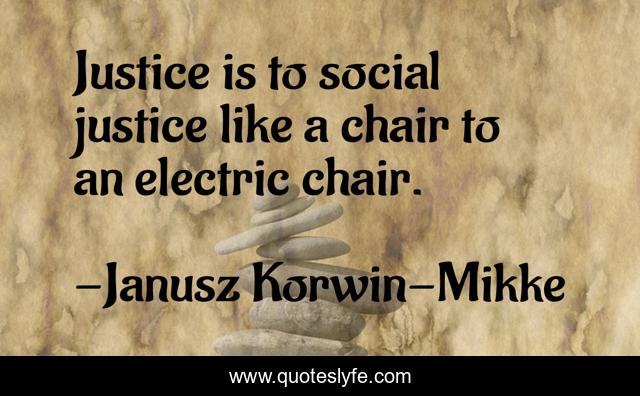This page presents the quote "Justice is to social justice like a chair to an electric chair.". Author of this quote is Janusz Korwin-Mikke. This quote is about justice, social-justice,.