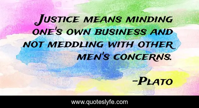 This page presents the quote "Justice means minding one's own business and not meddling with other men's concerns.". Author of this quote is Plato. This quote is about justice, own, men,.