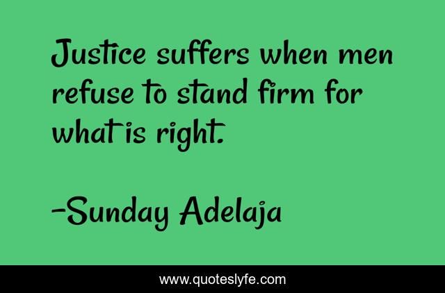 This page presents the quote "Justice suffers when men refuse to stand firm for what is right.". Author of this quote is Sunday Adelaja. This quote is about justice, right-things,.