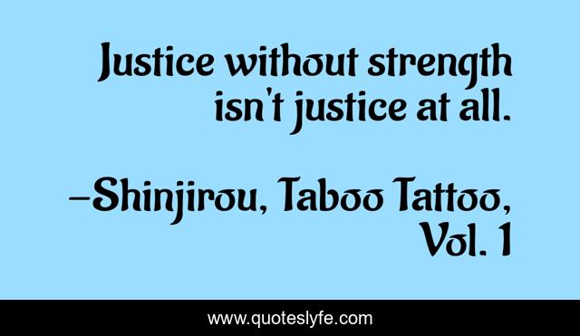 "Shinjirou, Taboo Tattoo, Vol. 1 Quotes." Quoteslyfe.com, 2025. Fri. 05 Dec. 2025. <https://www.quoteslyfe.com/quote/Justice-without-strength-isn-t-justice-at-104394>.