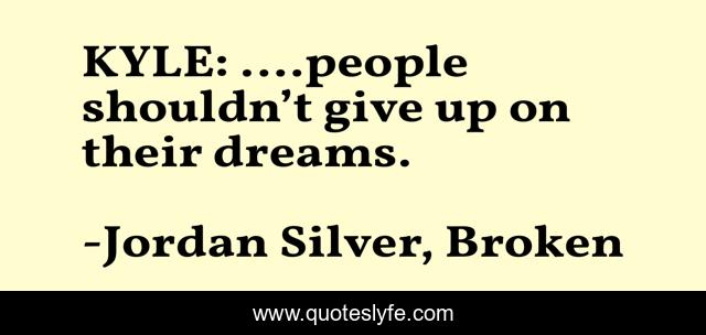 This page presents the quote "KYLE: ....people shouldn’t give up on their dreams.". Author of this quote is Jordan Silver, Broken. This quote is about romance, erotic-romance,.