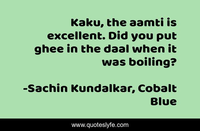 "Sachin Kundalkar, Cobalt Blue Quotes." Quoteslyfe.com, 2025. Mon. 08 Dec. 2025. <https://www.quoteslyfe.com/quote/Kaku-the-aamti-is-excellent-Did-you-168251>.
