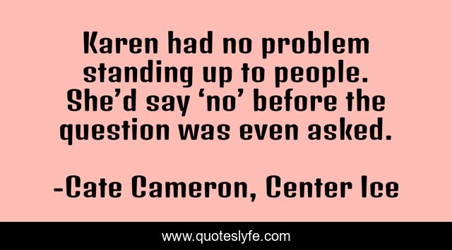 "Cate Cameron, Center Ice Quotes." Quoteslyfe.com, 2025. Fri. 05 Dec. 2025. <https://www.quoteslyfe.com/quote/Karen-had-no-problem-standing-up-to-237391>.