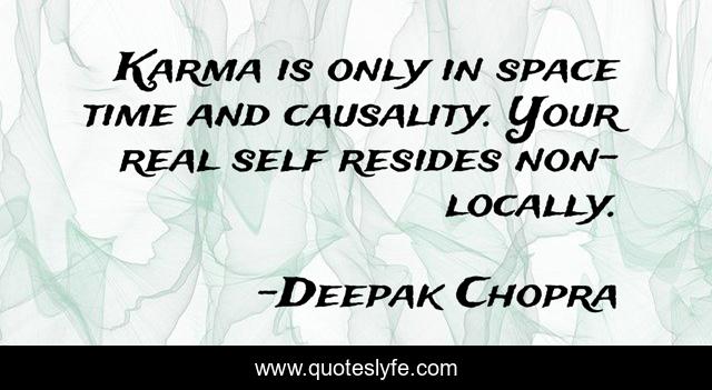 This page presents the quote "Karma is only in space time and causality. Your real self resides non-locally.". Author of this quote is Deepak Chopra. This quote is about self, karma, time,.