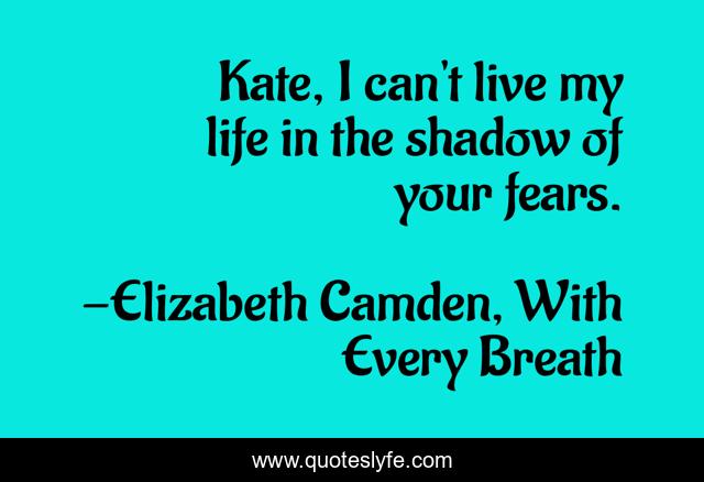 This page presents the quote "Kate, I can't live my life in the shadow of your fears.". Author of this quote is Elizabeth Camden, With Every Breath. This quote is about faith, fear, living,.
