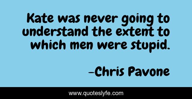 This page presents the quote "Kate was never going to understand the extent to which men were stupid.". Author of this quote is Chris Pavone. This quote is about stupidity, men,.
