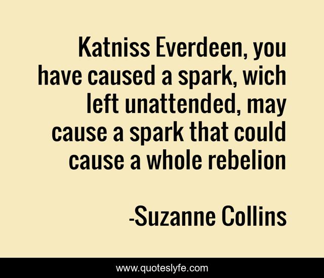 This page presents the quote "Katniss Everdeen, you have caused a spark, wich left unattended, may cause a spark that could cause a whole rebelion". Author of this quote is Suzanne Collins. .