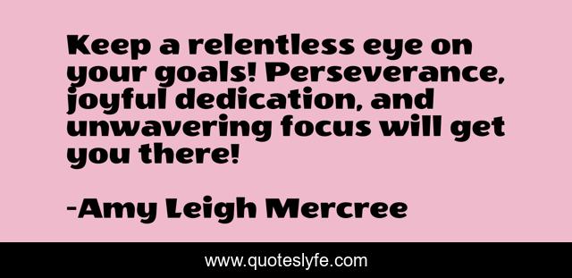 This page presents the quote "Keep a relentless eye on your goals! Perseverance, joyful dedication, and unwavering focus will get you there!". Author of this quote is Amy Leigh Mercree. This quote is about perseverance, quotes-twitter, quotes-de-la-vida, amy-leigh-mercree, quote-of-the-day, quotes-on-focus, quotes-tumblr, inspirational, quote-about-life,.