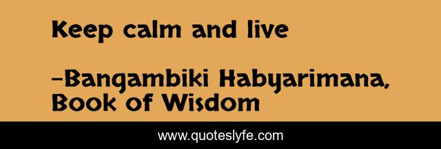 "Bangambiki Habyarimana, Book of Wisdom Quotes." Quoteslyfe.com, 2025. Sun. 07 Dec. 2025. <https://www.quoteslyfe.com/quote/Keep-calm-and-live-57520>.