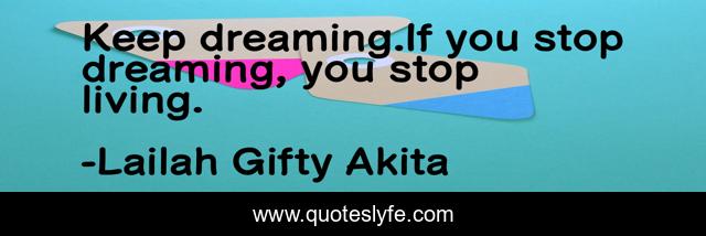 "Lailah Gifty Akita Quotes." Quoteslyfe.com, 2025. Sat. 06 Dec. 2025. <https://www.quoteslyfe.com/quote/Keep-dreaming-If-you-stop-dreaming-you-208410>.
