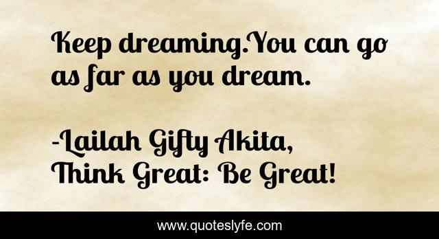 "Lailah Gifty Akita, Think Great: Be Great! Quotes." Quoteslyfe.com, 2025. Fri. 05 Dec. 2025. <https://www.quoteslyfe.com/quote/Keep-dreaming-You-can-go-as-far-140482>.