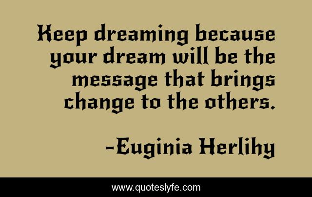 This page presents the quote "Keep dreaming because your dream will be the message that brings change to the others.". Author of this quote is Euginia Herlihy. .