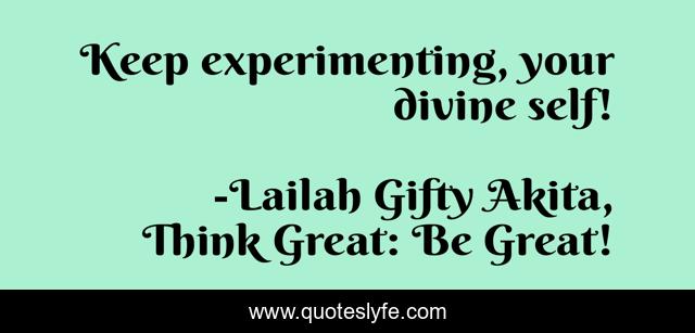 "Lailah Gifty Akita, Think Great: Be Great! Quotes." Quoteslyfe.com, 2025. Fri. 05 Dec. 2025. <https://www.quoteslyfe.com/quote/Keep-experimenting-your-divine-self-141732>.