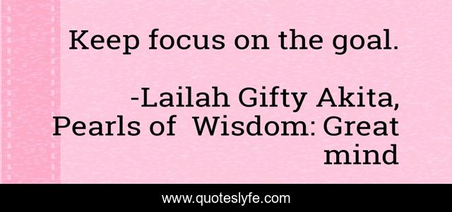 "Lailah Gifty Akita, Pearls of Wisdom: Great mind Quotes." Quoteslyfe.com, 2025. Mon. 08 Dec. 2025. <https://www.quoteslyfe.com/quote/Keep-focus-on-the-goal-34380>.