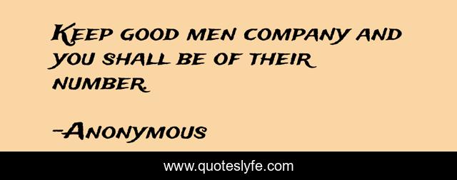 This page presents the quote "Keep good men company and you shall be of their number.". Author of this quote is Anonymous. .