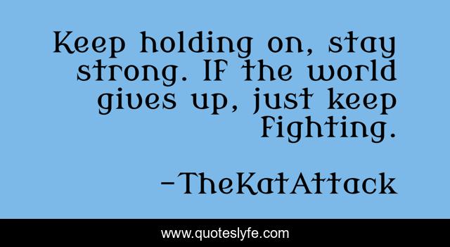 This page presents the quote "Keep holding on, stay strong. If the world gives up, just keep fighting.". Author of this quote is TheKatAttack. This quote is about stay-strong, courage,.