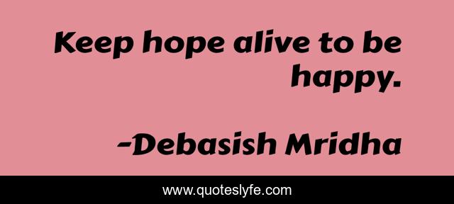 "Debasish Mridha Quotes." Quoteslyfe.com, 2025. Fri. 05 Dec. 2025. <https://www.quoteslyfe.com/quote/Keep-hope-alive-to-be-happy-90669>.