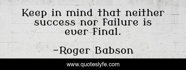 "Roger Babson Quotes." Quoteslyfe.com, 2025. Mon. 08 Dec. 2025. <https://www.quoteslyfe.com/quote/Keep-in-mind-that-neither-success-nor-286307>.