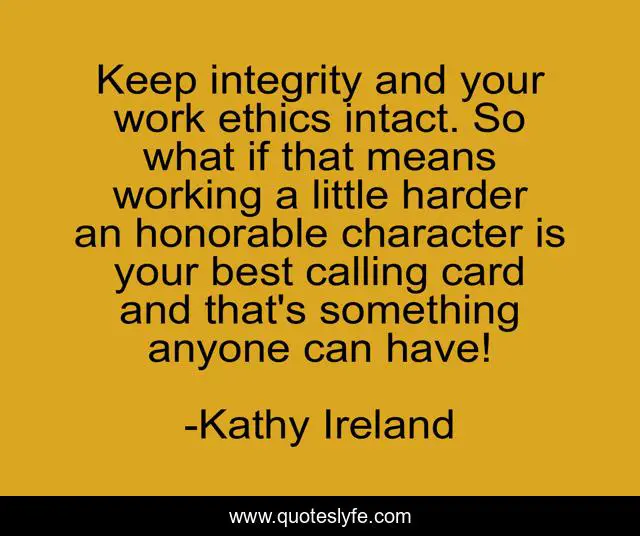 This page presents the quote "Keep integrity and your work ethics intact. So what if that means working a little harder an honorable character is your best calling card and that's something anyone can have!". Author of this quote is Kathy Ireland. .