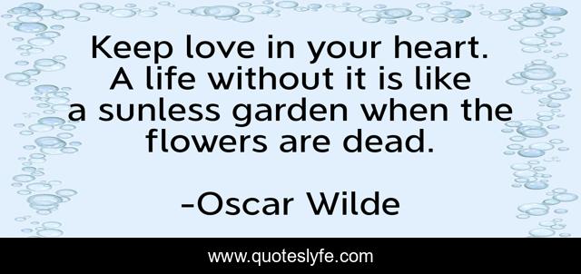 This page presents the quote "Keep love in your heart. A life without it is like a sunless garden when the flowers are dead.". Author of this quote is Oscar Wilde. .