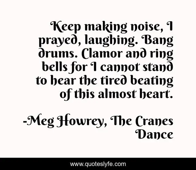 "Meg Howrey, The Cranes Dance Quotes." Quoteslyfe.com, 2025. Fri. 05 Dec. 2025. <https://www.quoteslyfe.com/quote/Keep-making-noise-I-prayed-laughing-Bang-196478>.