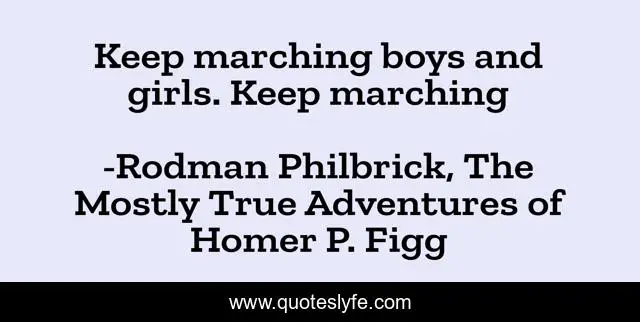 "Rodman Philbrick, The Mostly True Adventures of Homer P. Figg Quotes." Quoteslyfe.com, 2025. Sat. 06 Dec. 2025. <https://www.quoteslyfe.com/quote/Keep-marching-boys-and-girls-Keep-marching-26058>.