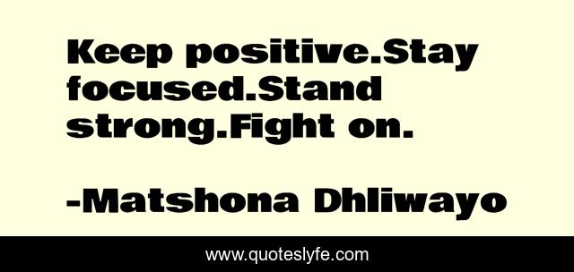 "Matshona Dhliwayo Quotes." Quoteslyfe.com, 2025. Fri. 05 Dec. 2025. <https://www.quoteslyfe.com/quote/Keep-positive-Stay-focused-Stand-strong-Fight-258888>.