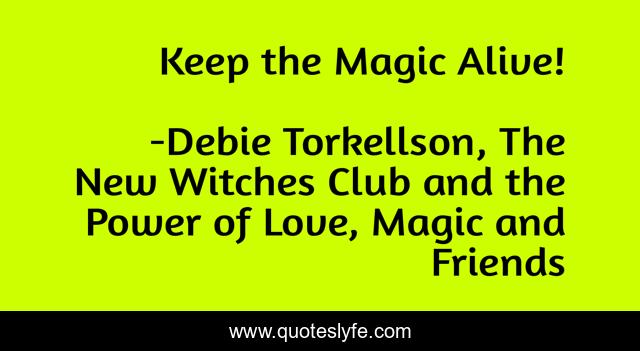 "Debie Torkellson, The New Witches Club and the Power of Love, Magic and Friends Quotes." Quoteslyfe.com, 2025. Sat. 06 Dec. 2025. <https://www.quoteslyfe.com/quote/Keep-the-Magic-Alive-50427>.
