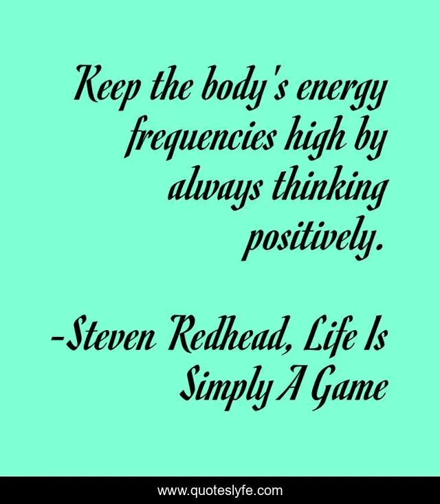 "Steven Redhead, Life Is Simply A Game Quotes." Quoteslyfe.com, 2025. Fri. 05 Dec. 2025. <https://www.quoteslyfe.com/quote/Keep-the-body-s-energy-frequencies-high-162989>.