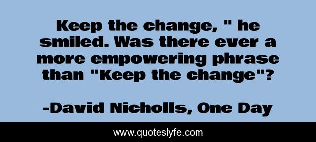 "David Nicholls, One Day Quotes." Quoteslyfe.com, 2025. Fri. 05 Dec. 2025. <https://www.quoteslyfe.com/quote/Keep-the-change-he-smiled-Was-there-88827>.